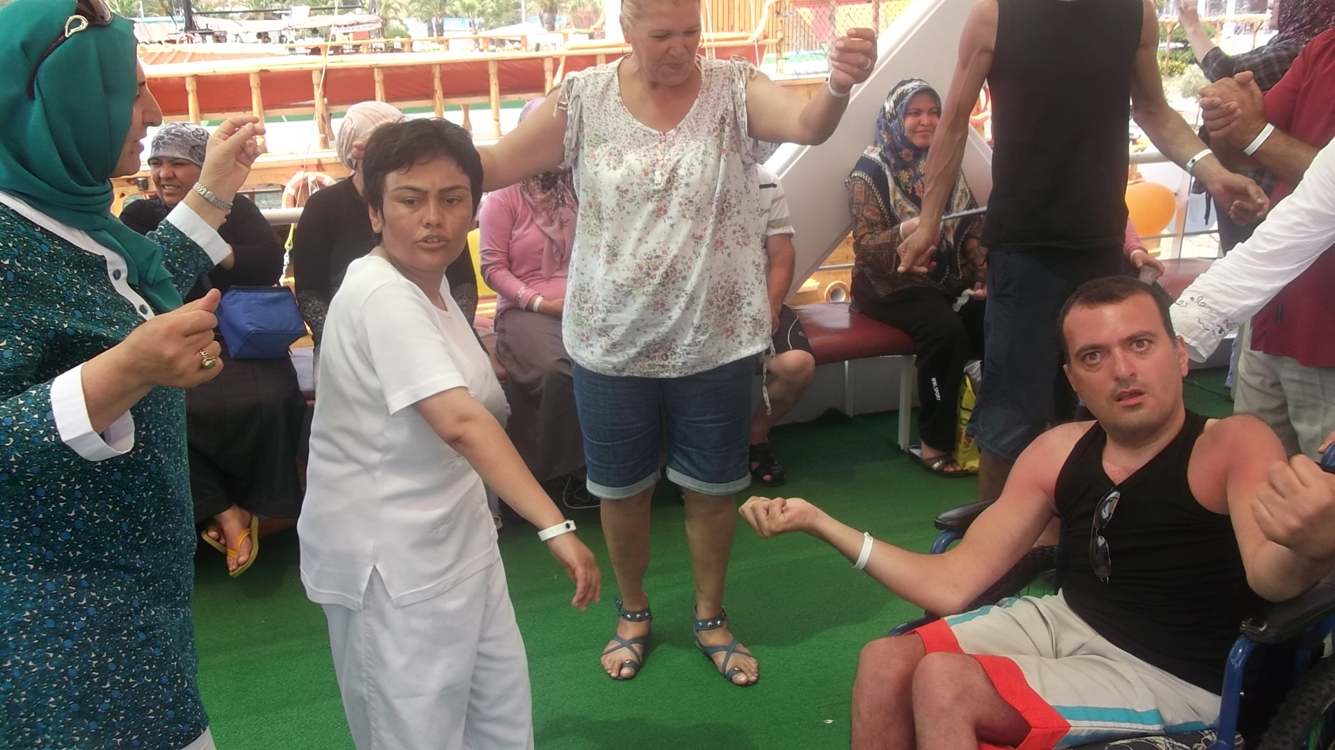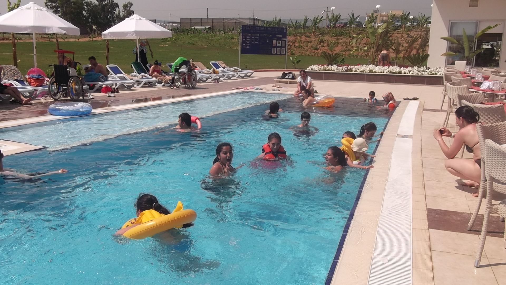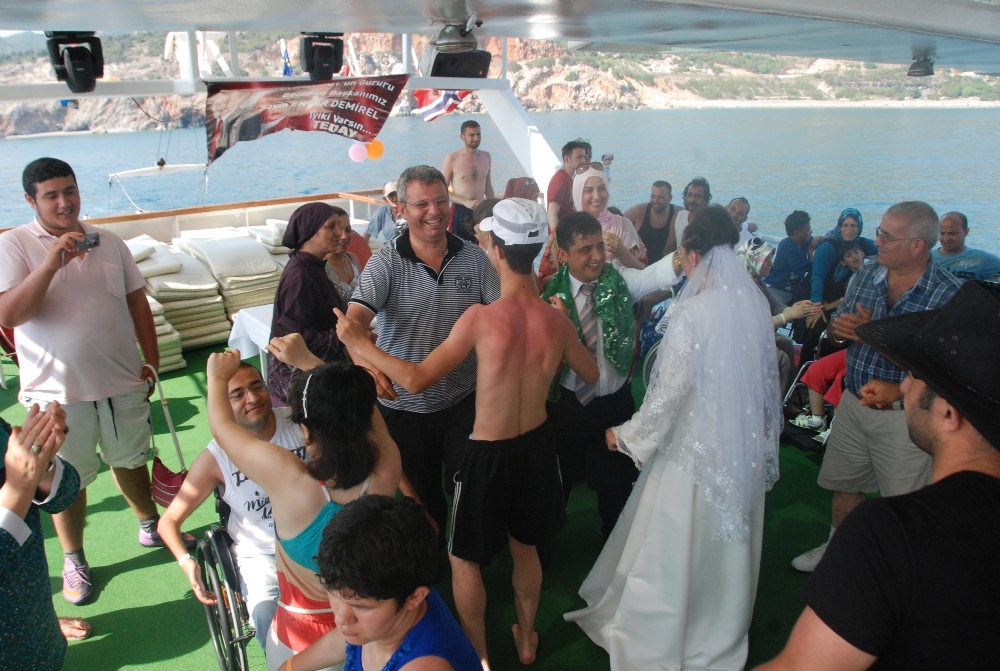 Alanya da 5 yıldızlı b ir otele yerleştirilen engelliler deniz , kum ve doğa ile buluşarak hayatın tadını çıkardılar.Katılımcı engellilerden kas hastası spastik, ortapedi ,MR,görme,işitme,konuşma engelli gruplarımız kumsalın,denizin,aqua parklı havuzların,1 günlük tekne gezisi,konforlu otelin tüm olanaklarından en iyi şekilde faydalandılar.Denizin renginin kırmızı olduğunu düşünen görme engelli çocuk gruplarımız denizin asıl rengini öğrendiler.